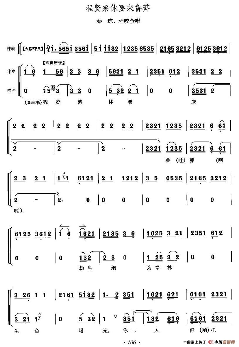 关于《程贤弟休要来鲁莽》曲谱的评论