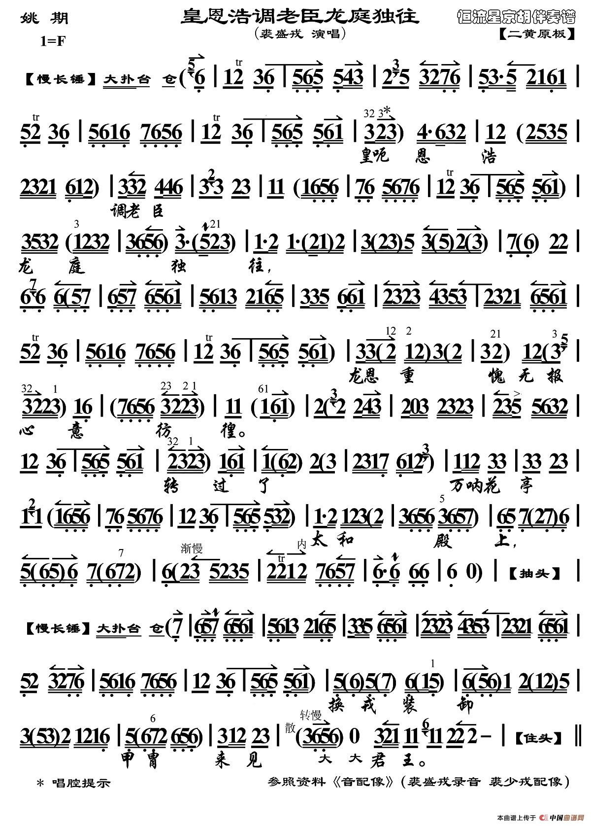 关于《皇恩浩调老臣龙庭独往》曲谱的评论