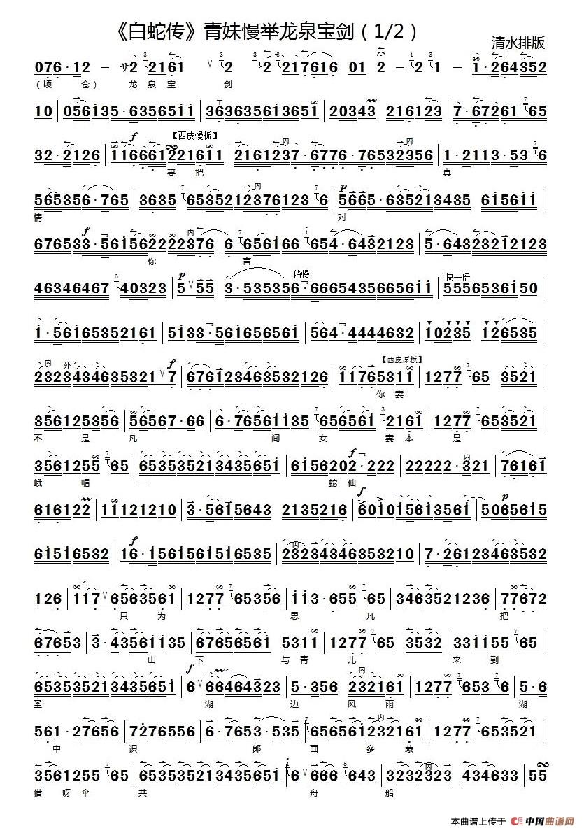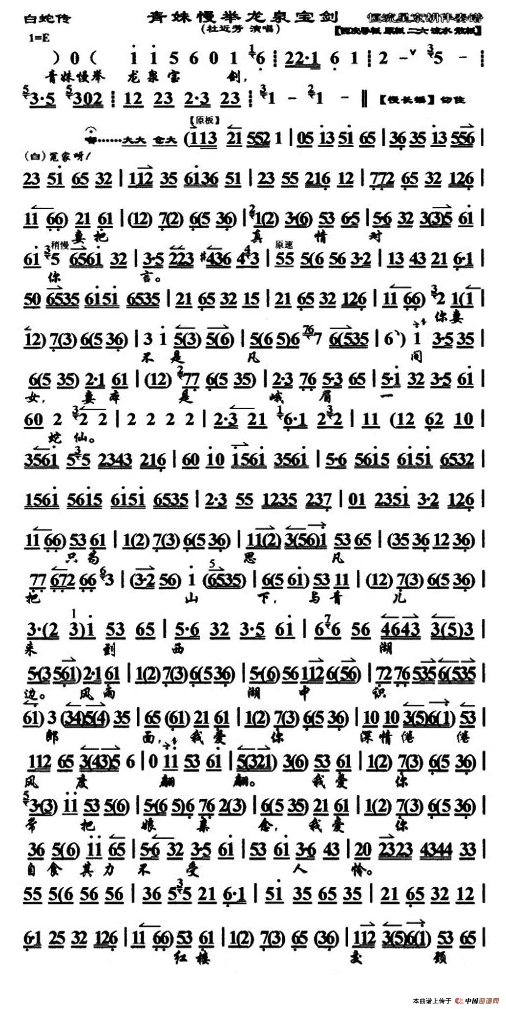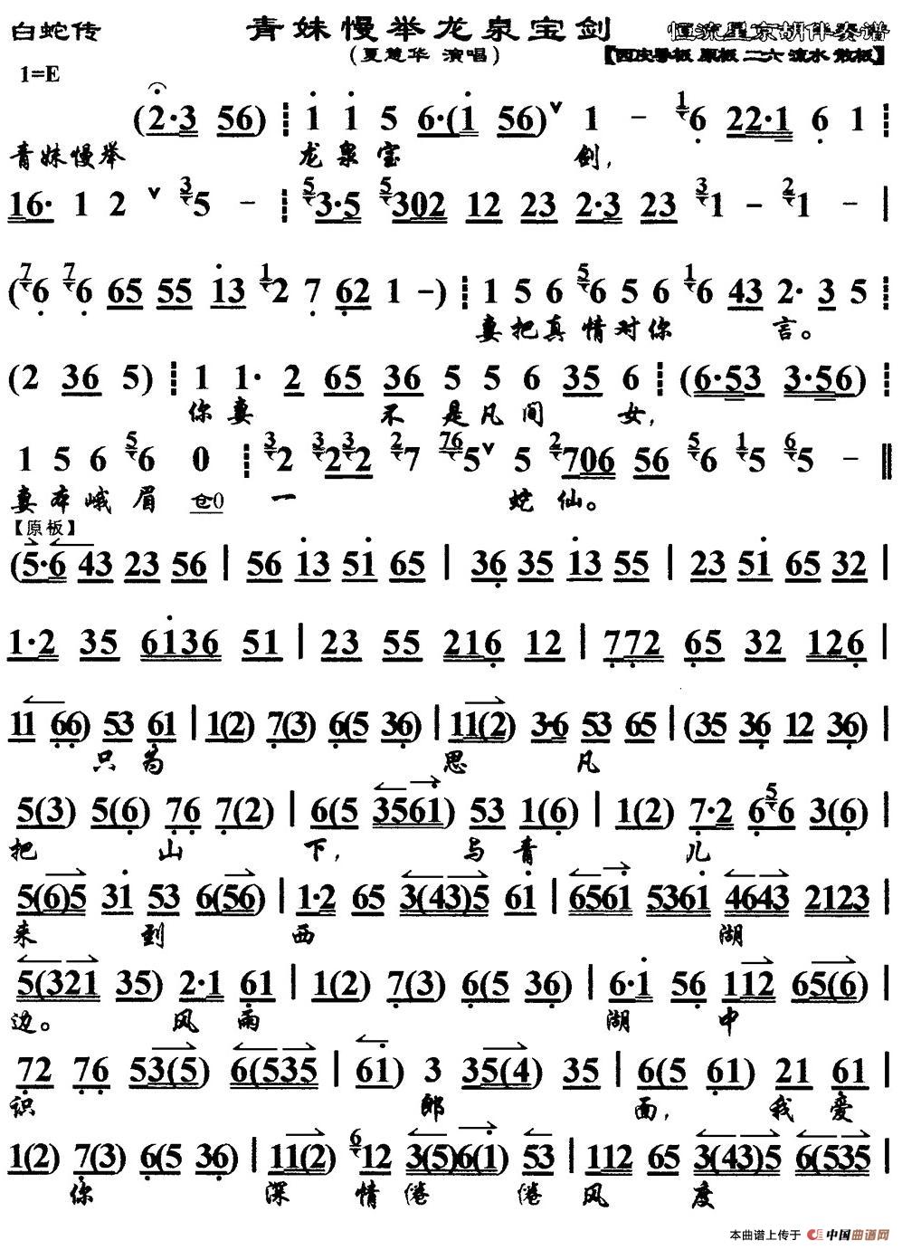 青妹慢举龙泉宝剑(《白蛇传》选段、琴谱)