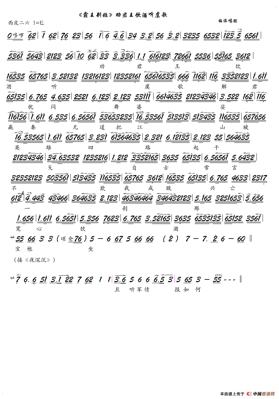 《霸王别姬》劝君王饮酒听虞歌(京剧《霸王别姬》选段、琴谱)