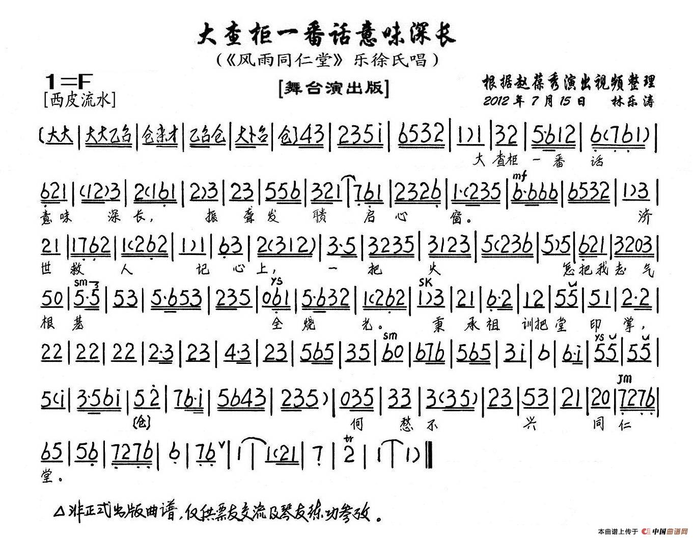 大查柜一番话意味深长(《风雨同仁堂》乐徐氏唱段、琴谱)