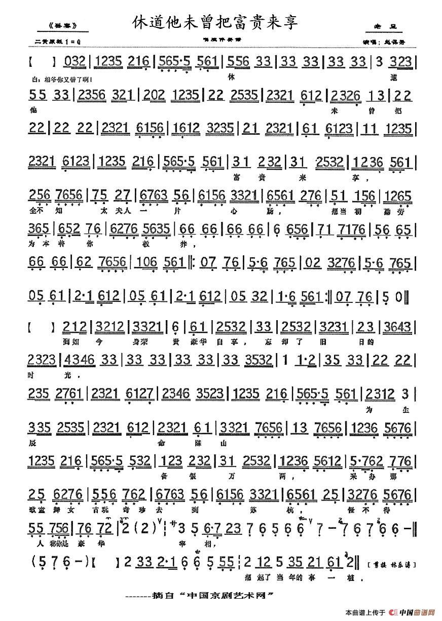关于《休道他未曾把富贵来享》曲谱的评论