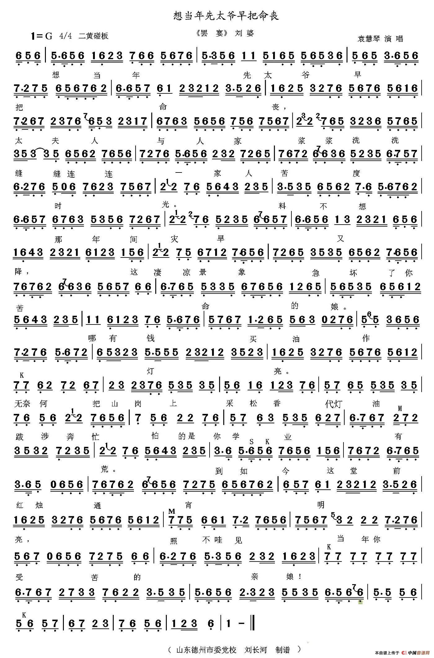 想当年先太爷早把命丧(《罢晏》刘婆唱段、琴谱)