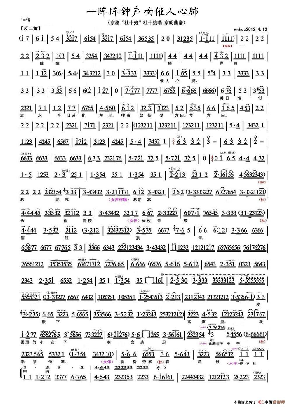 一阵阵钟声响催人心肺(《杜十娘》杜十娘唱段、琴谱)