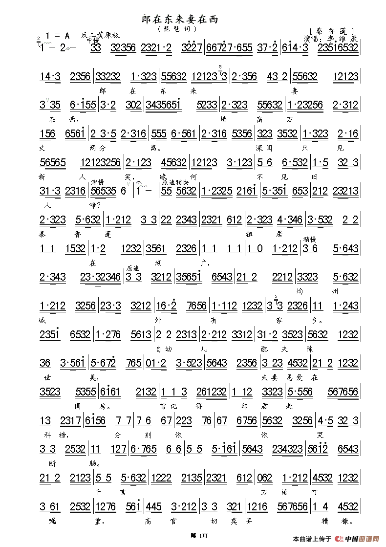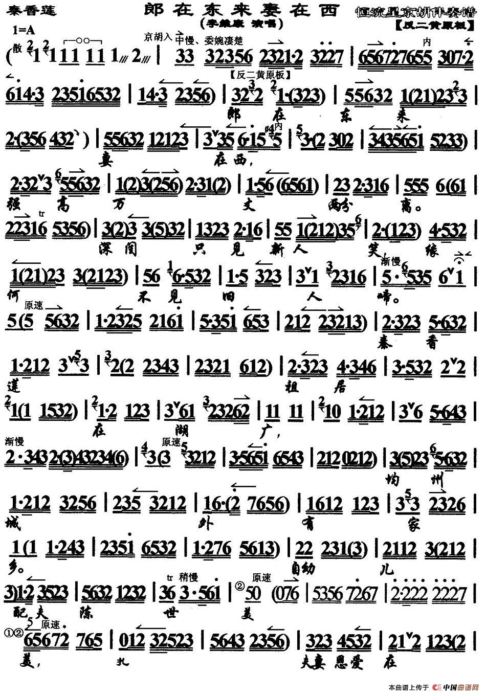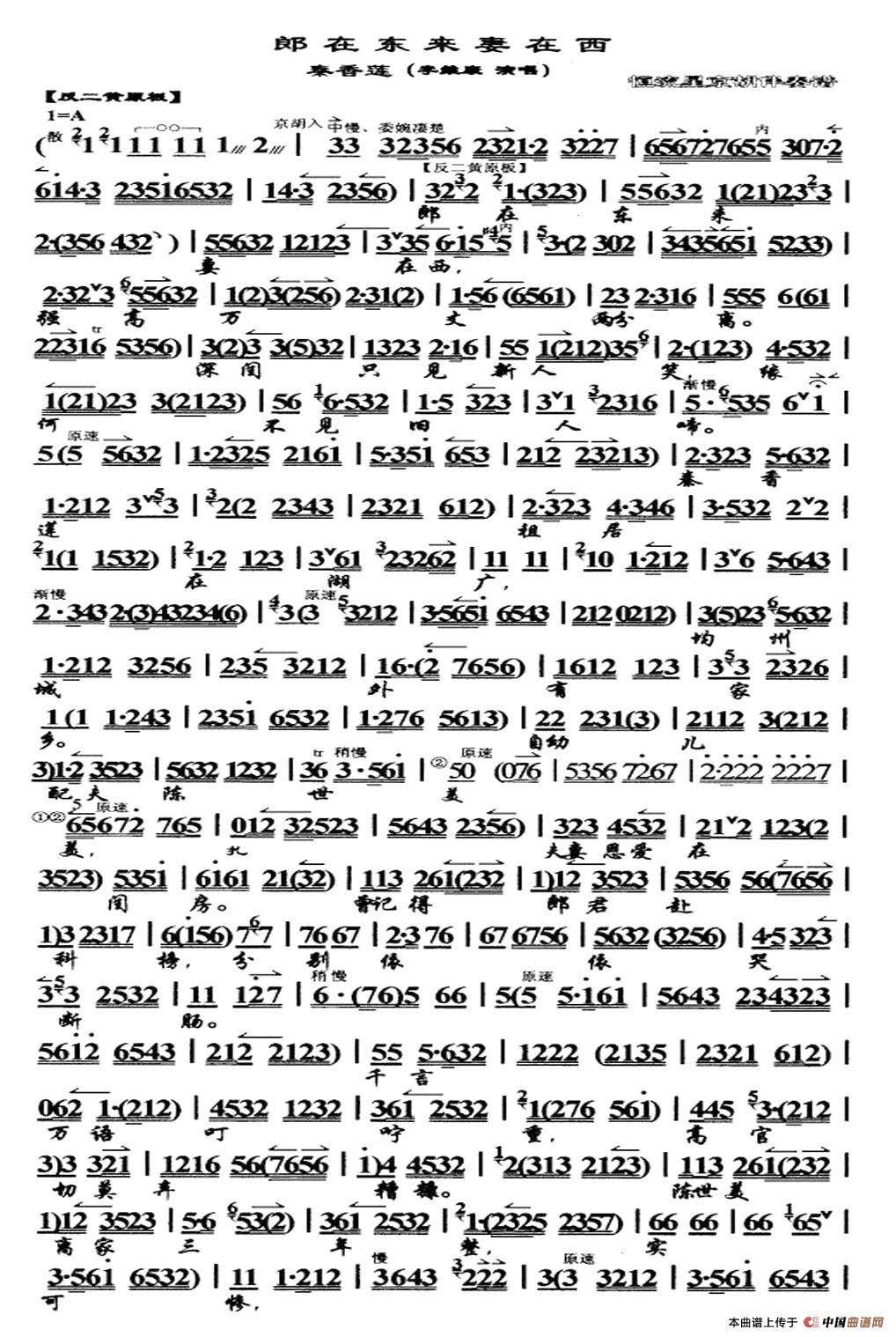郎在东来妻在西(《秦香莲》选段、琴谱)