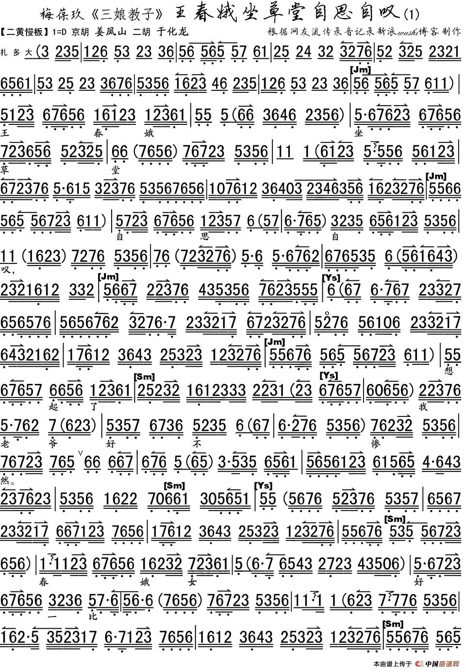 关于《王春娥坐草堂自思自叹》曲谱的评论
