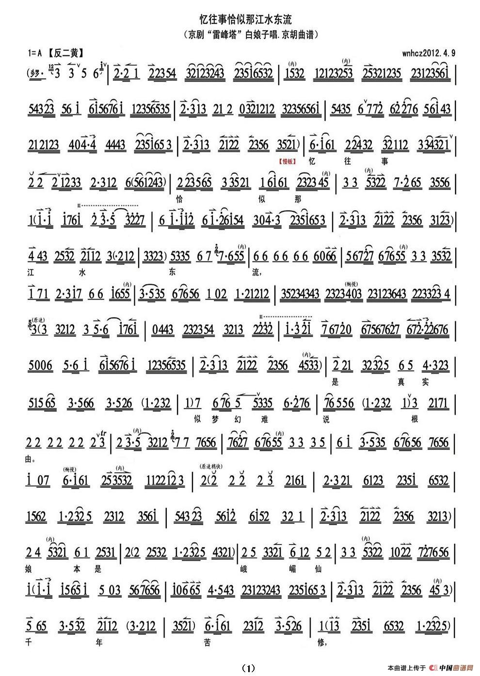 忆往事恰似那江水东流(《白蛇传.雷锋塔》选段、琴谱)