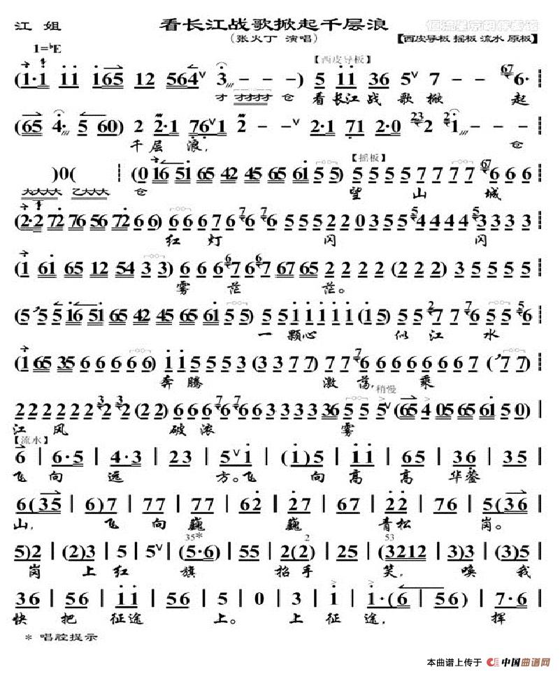 看长江战歌掀起千层浪(《江姐》选段、琴谱)
