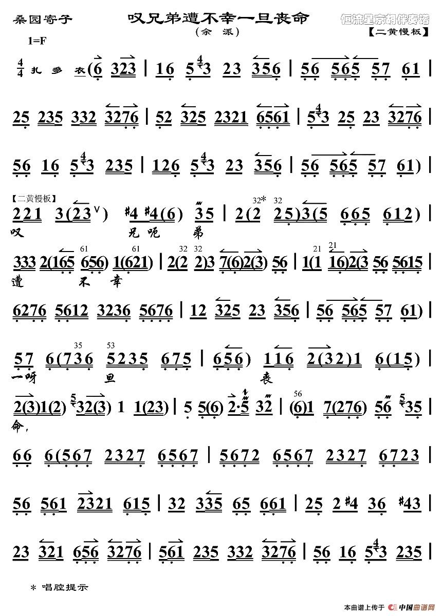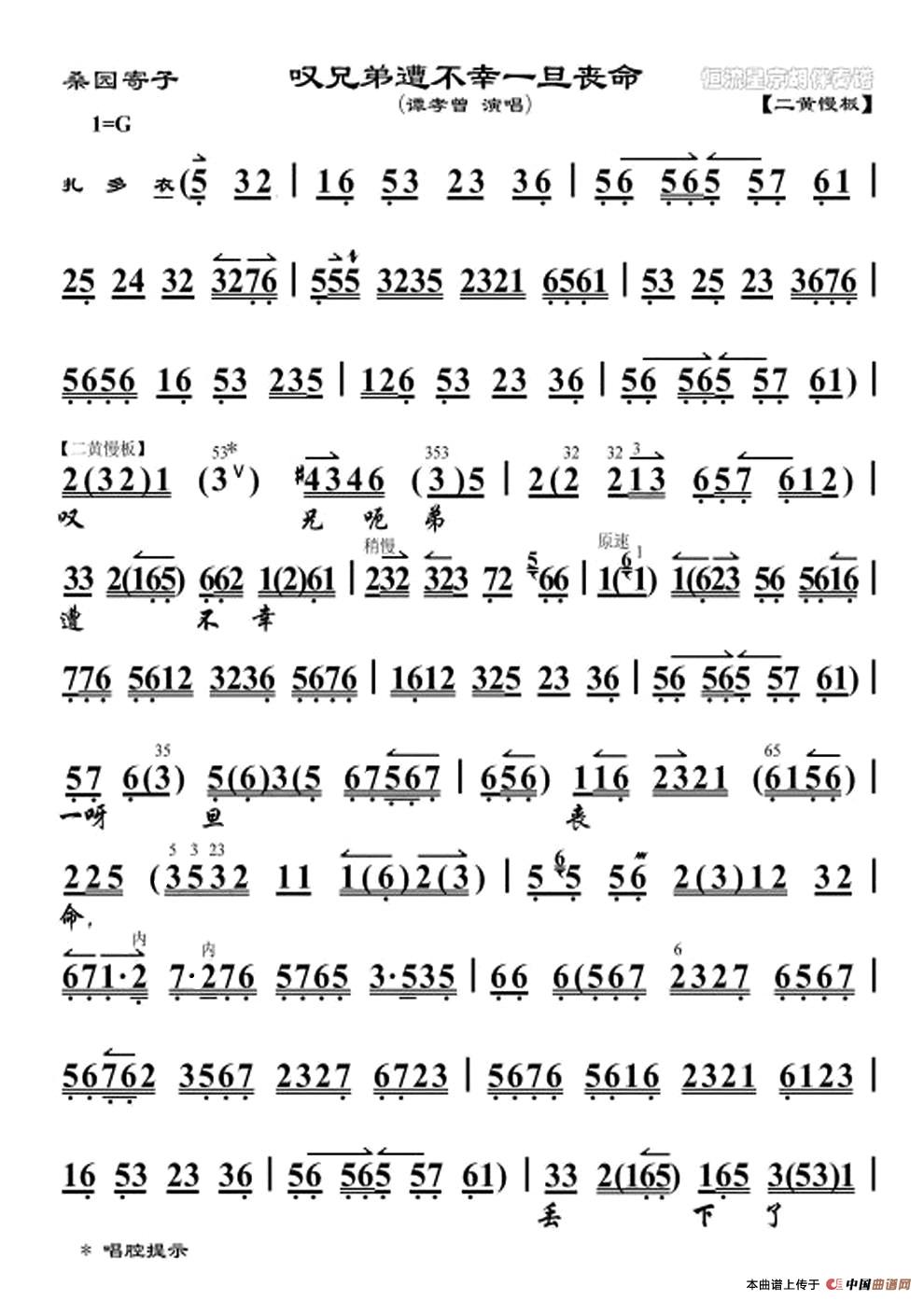 叹兄弟遭不幸一旦丧命(《桑园寄子》选段、琴谱)
