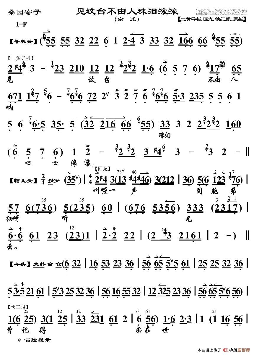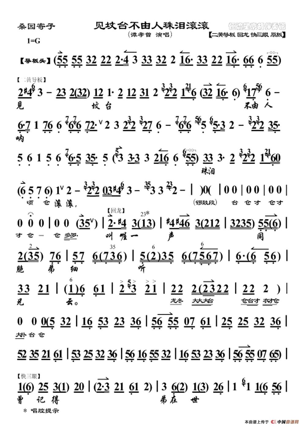 见坟台不由人珠泪滚滚(《桑园寄子》选段、琴谱)