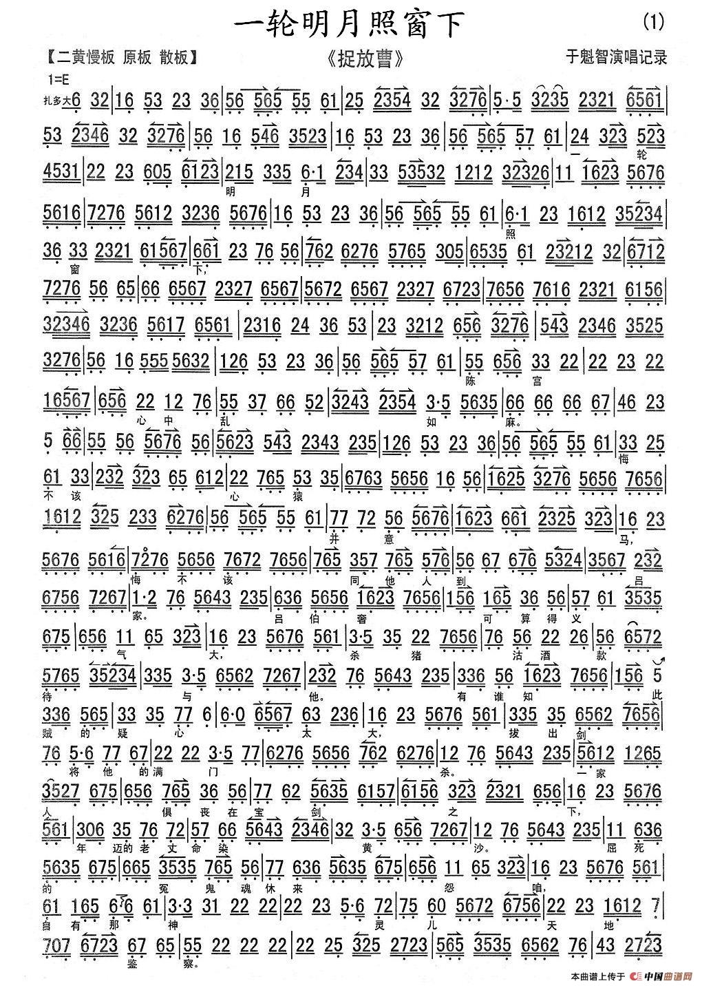 一轮明月照窗下(《捉放曹》陈宫唱段、于魁智演唱版、琴谱))