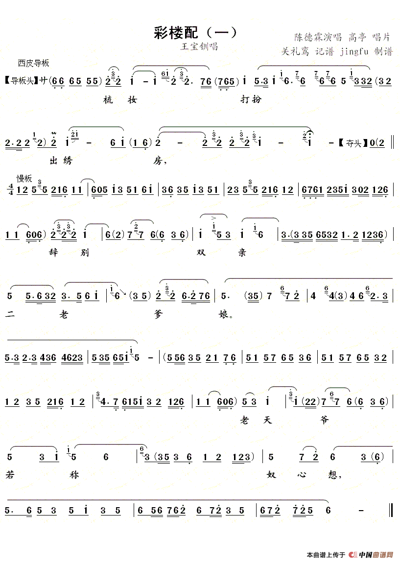 梳妆打扮出绣房(《彩楼配》王宝钏唱段)