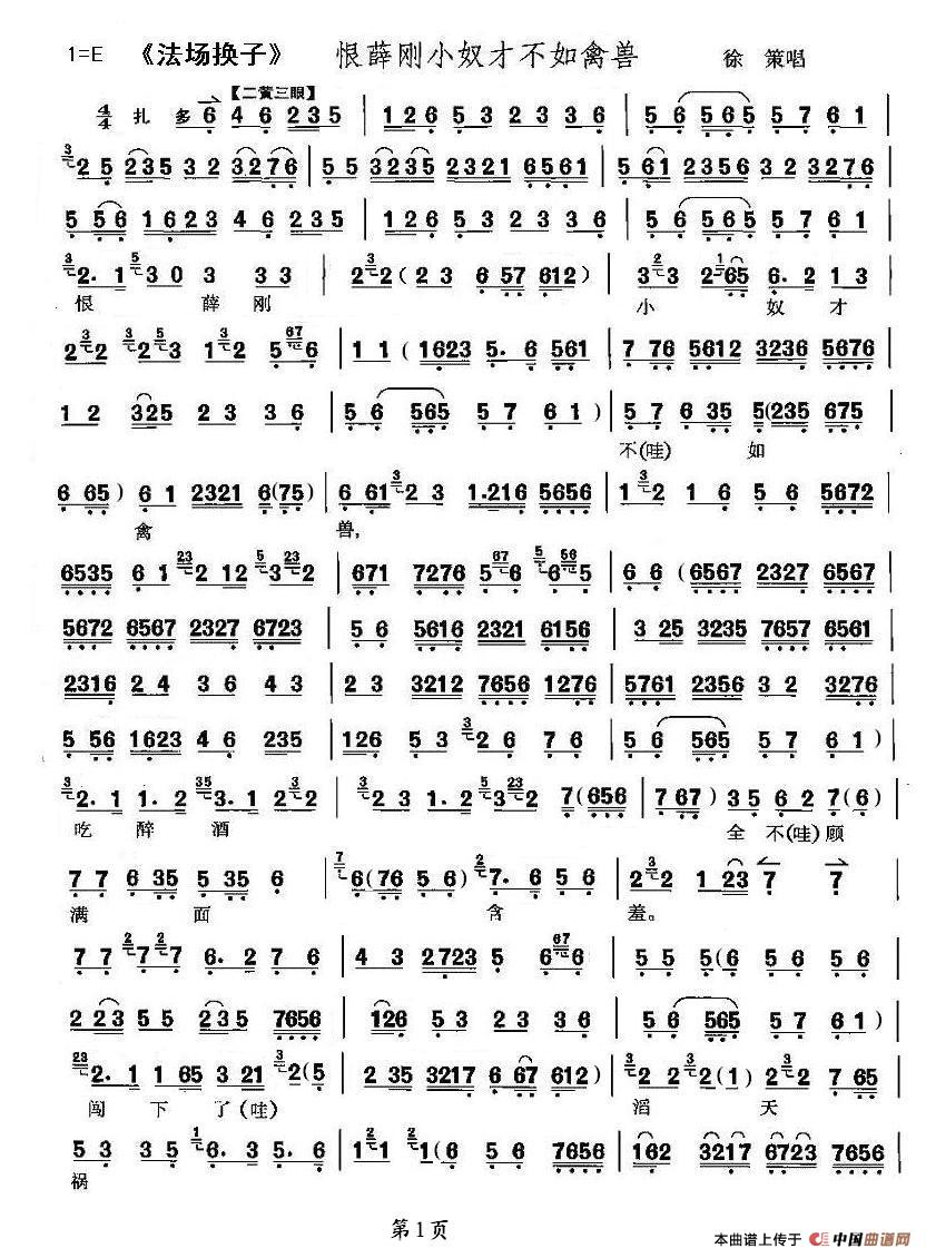 关于《恨薛刚小奴才不如禽兽》曲谱的评论