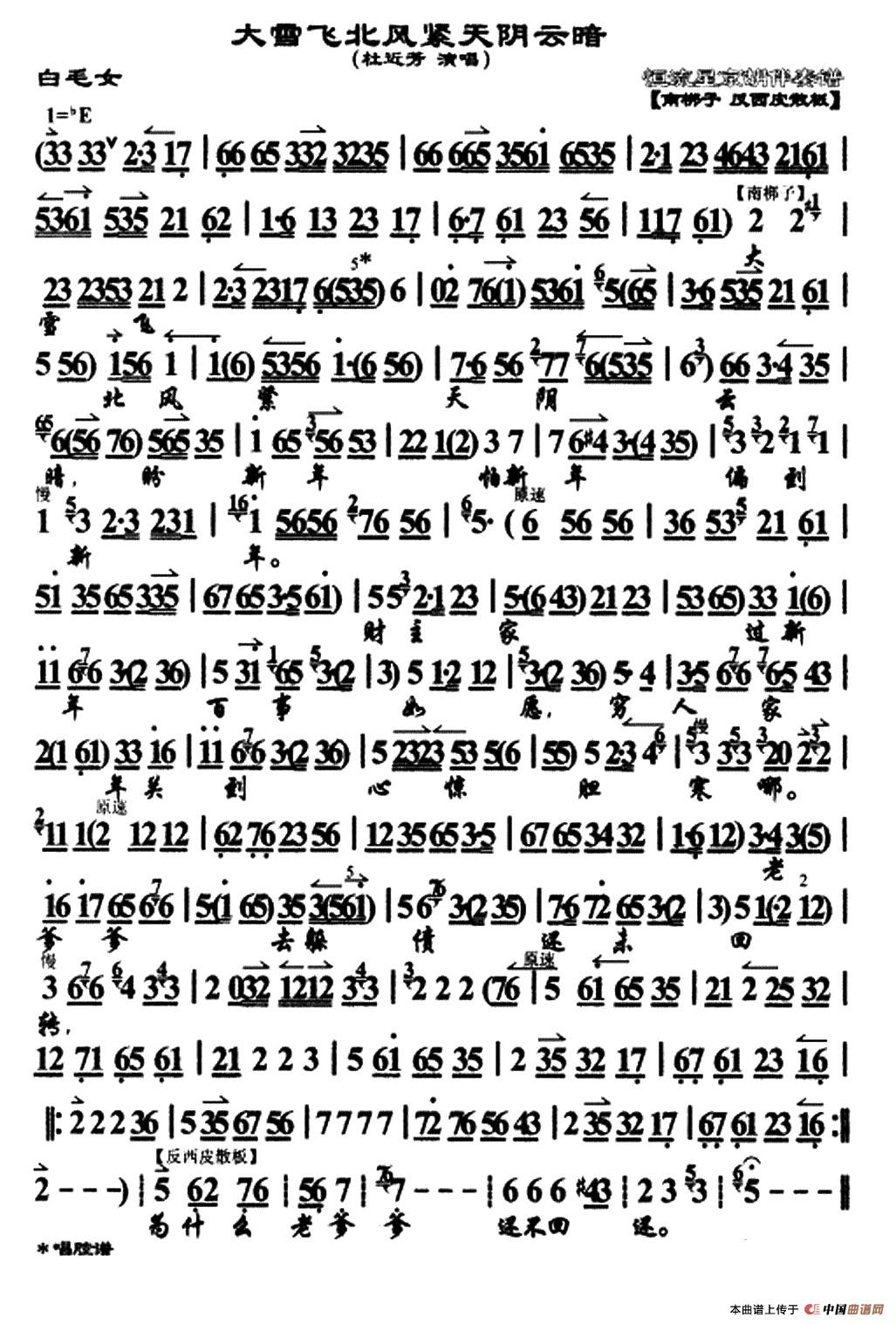 大雪飞北风紧天阴云暗(《白毛女》选段、唱腔谱)