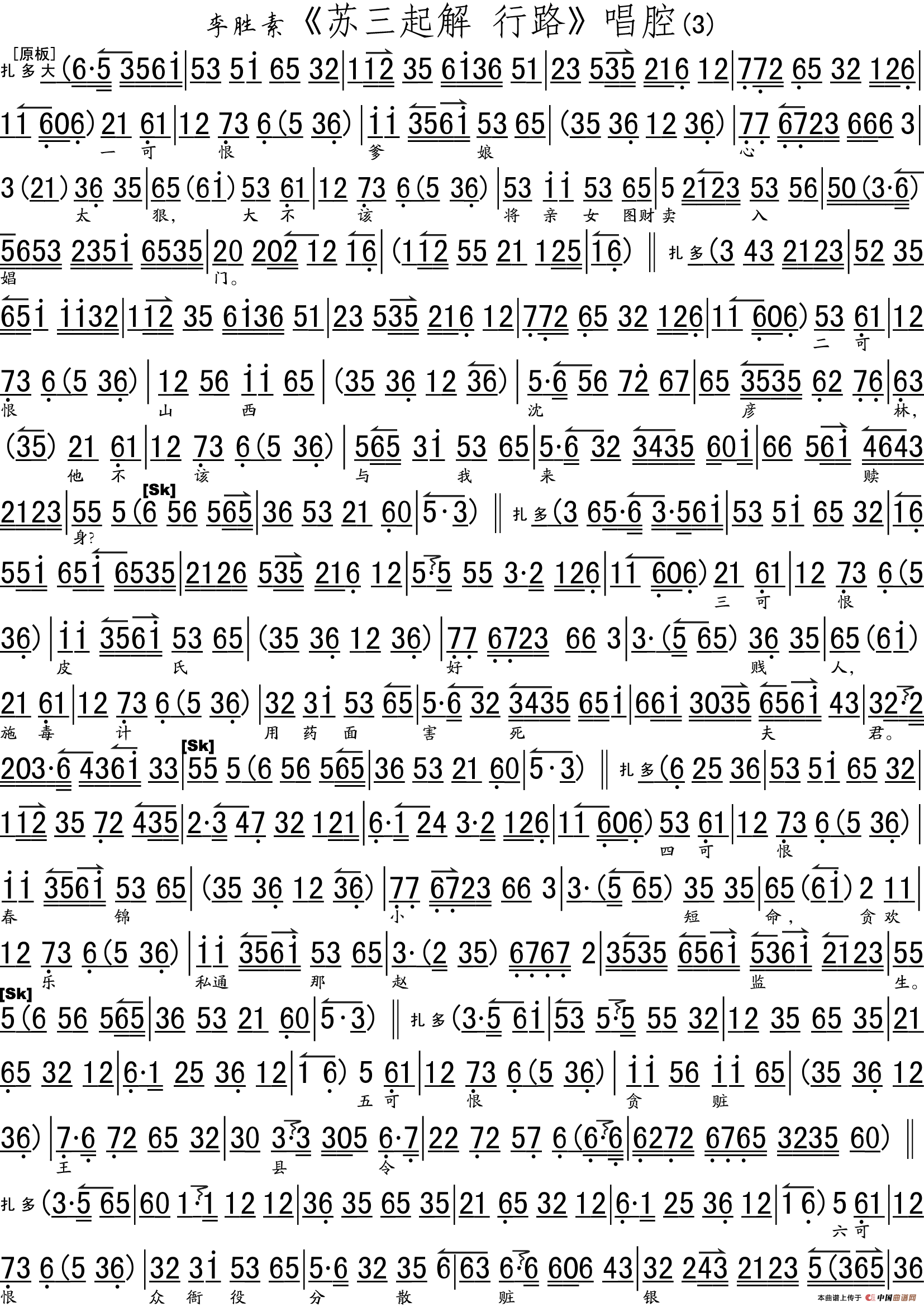 李胜素《苏三起解·行路》唱腔剪辑(琴谱)