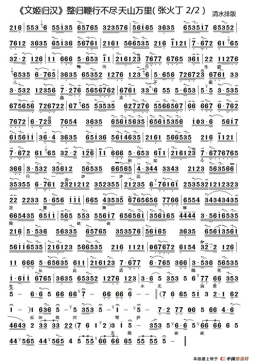 整归鞭行不尽天山万里(《文姬归汉》选段、琴谱)(张火丁演唱版)