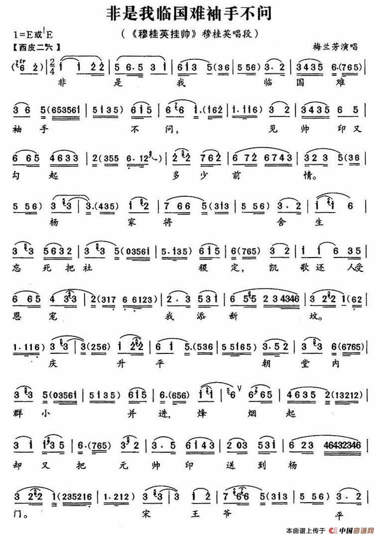 非是我临国难袖手不问(《穆桂英挂帅》穆桂英唱段)