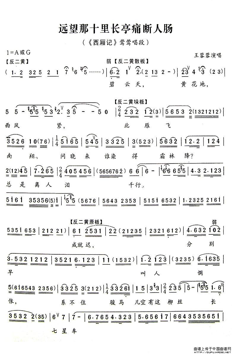 关于《远望那十里长亭痛断人肠》曲谱的评论