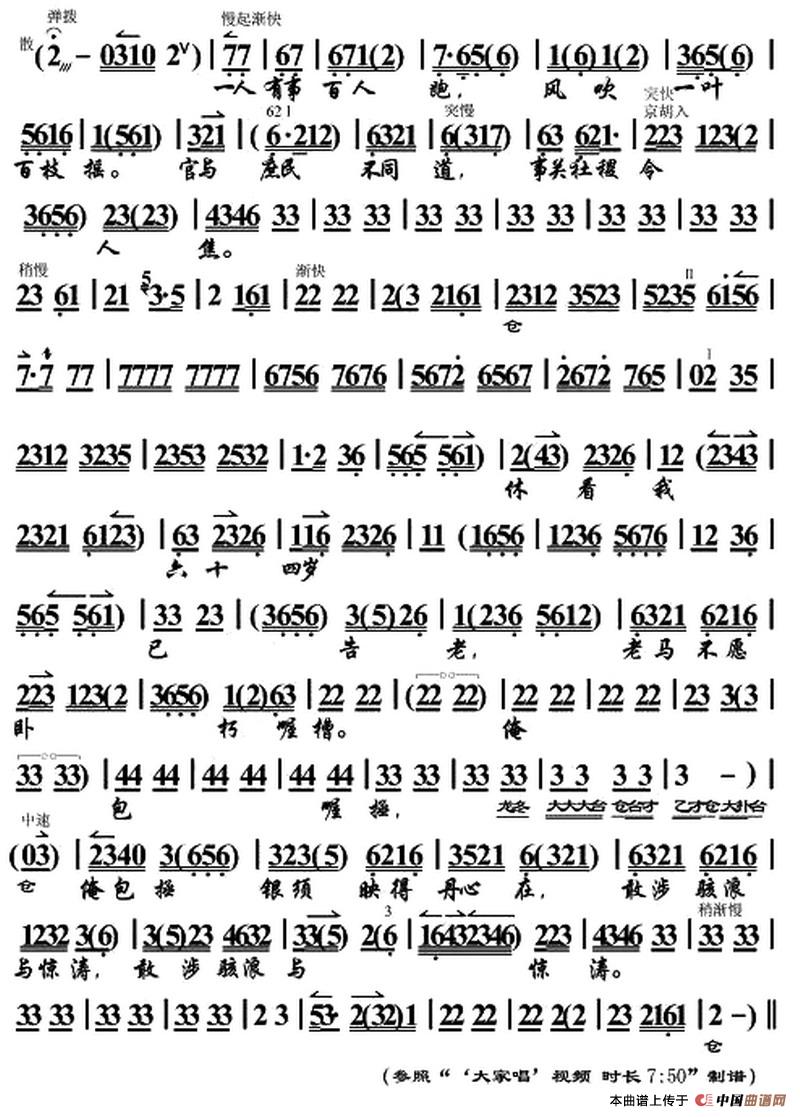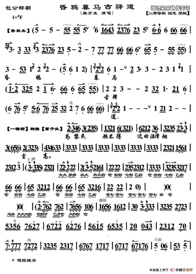 昏鸦暮马古驿道(《包公辞朝》唱段、琴谱)