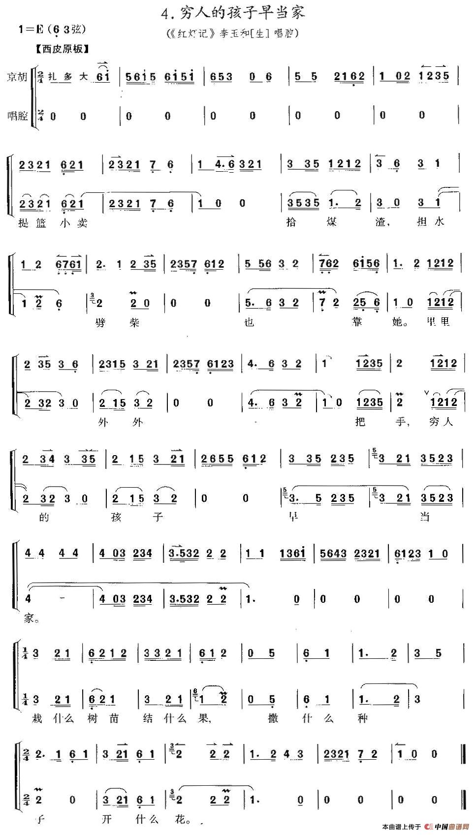 穷人的孩子早当家(《红灯记》李玉和唱段、京胡考级谱)