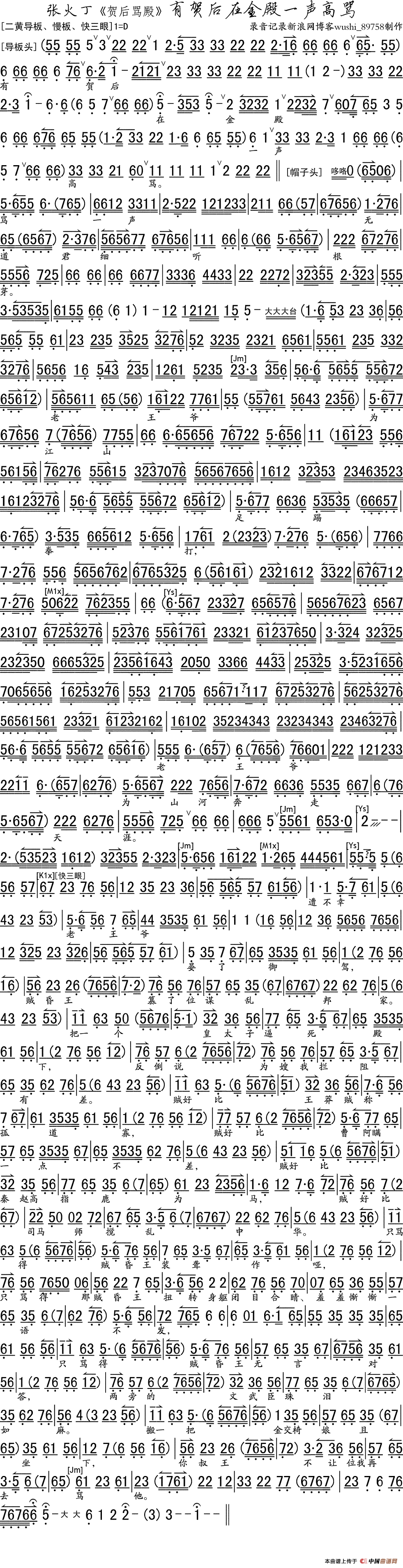关于《有贺后在金殿一声高骂》曲谱的评论