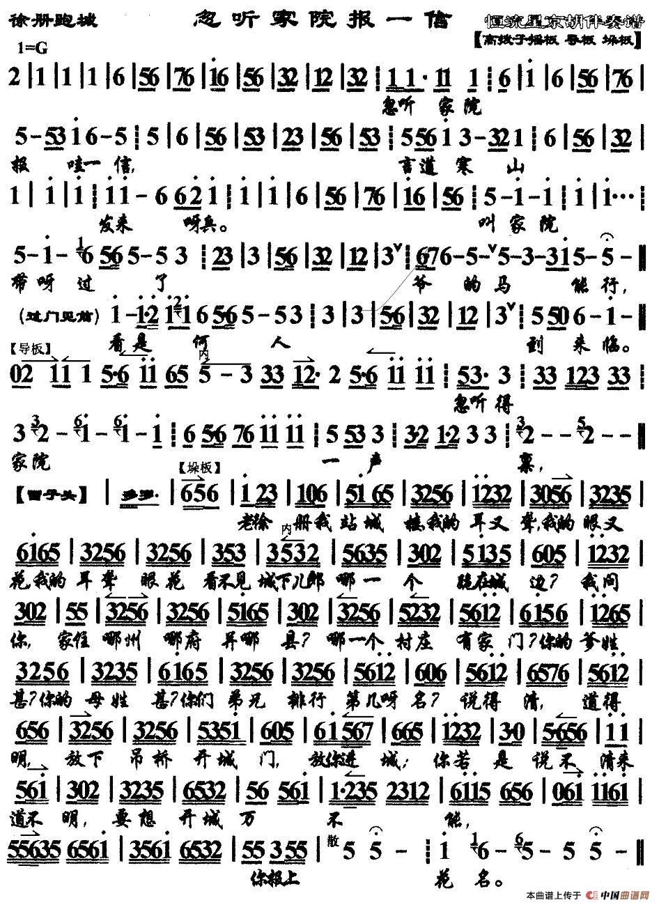 忽听家院报一信(《徐策跑城》选段、京胡伴奏谱)