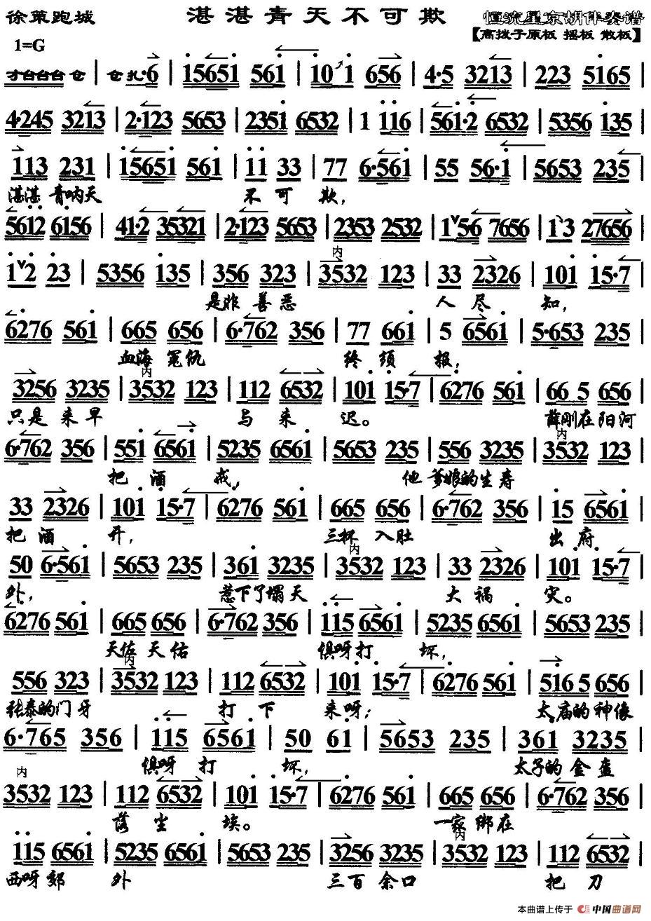 湛湛青天不可欺(《徐策跑城》选段、京胡伴奏谱)