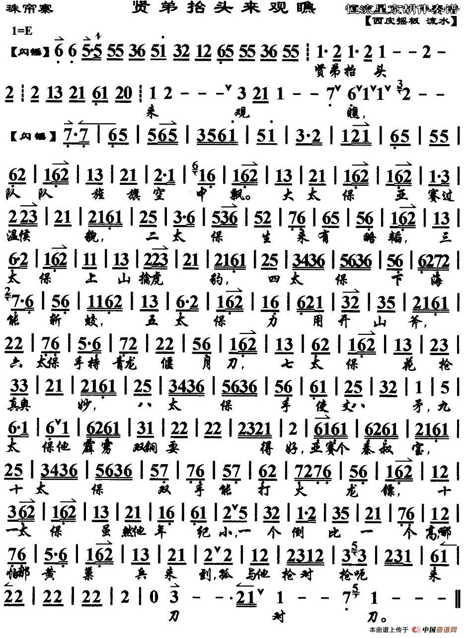 贤弟抬头来观瞧(《珠帘寨》选段、京胡伴奏谱)