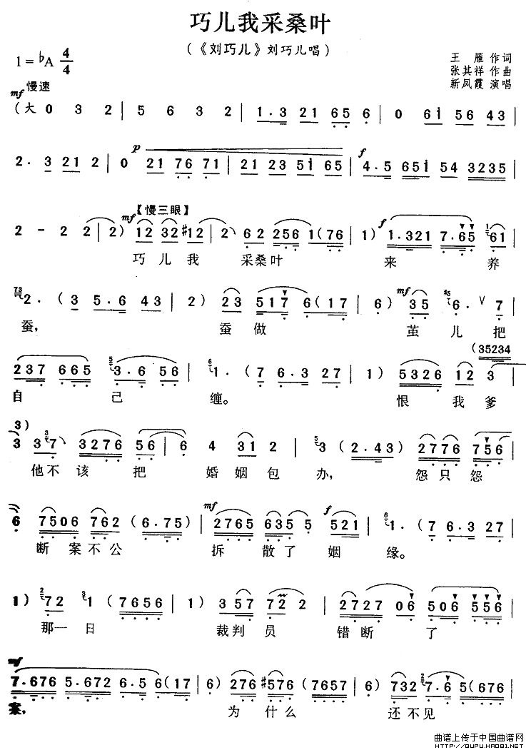 关于《巧儿我采桑叶》曲谱的评论