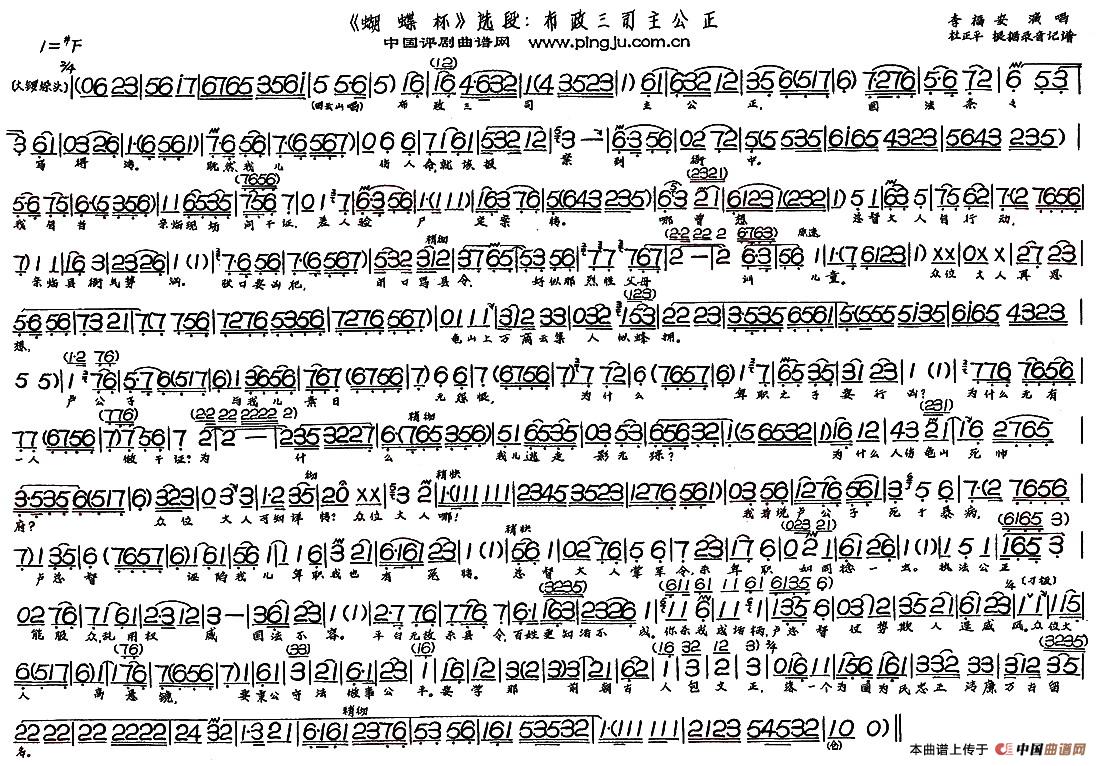 关于《布政三司主公正》曲谱的评论