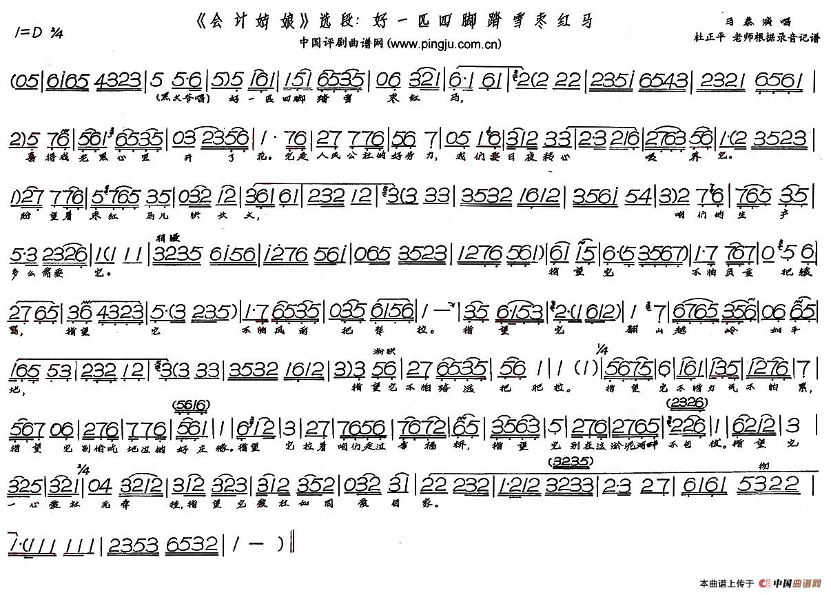 关于《好一匹四脚踏雪枣红马》曲谱的评论
