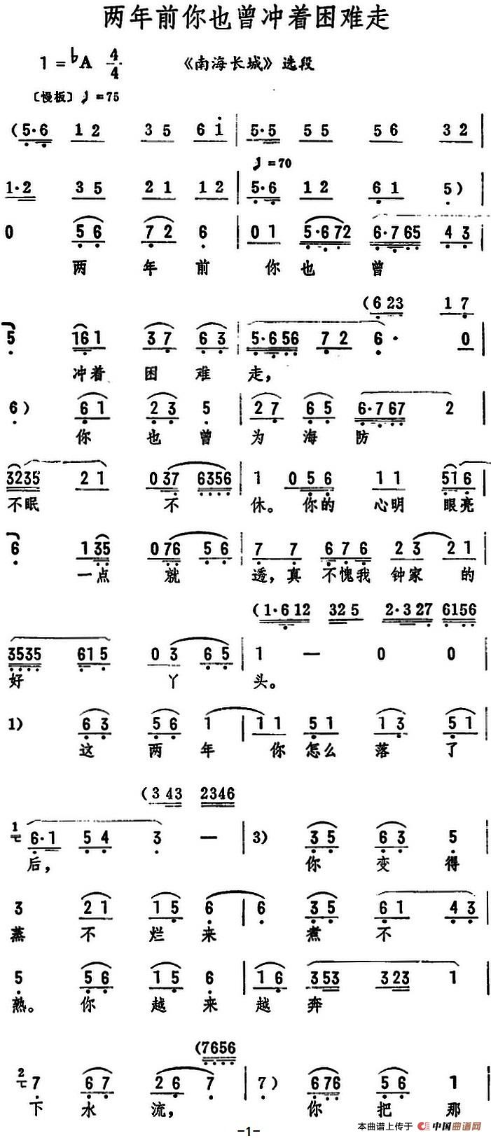 关于《两年前你也曾冲着困难走》曲谱的评论