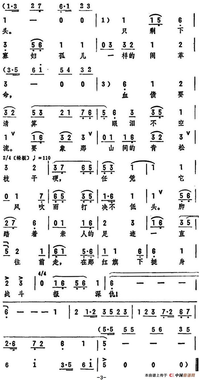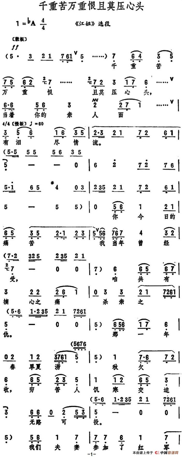关于《千重苦万重恨且莫压心头》曲谱的评论