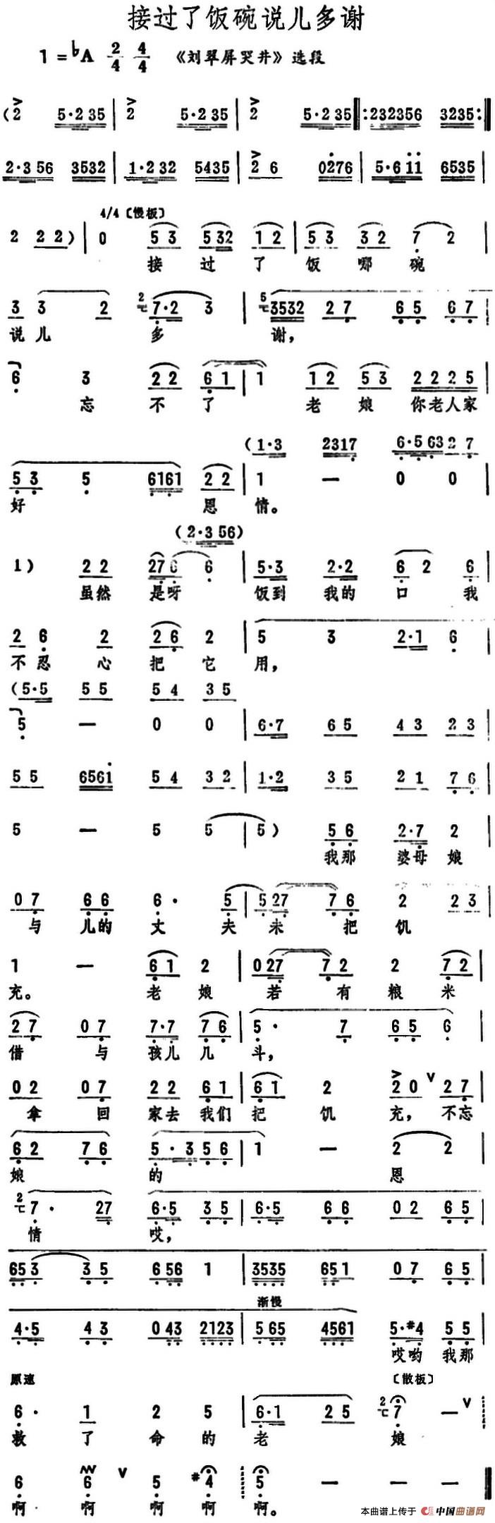 接过了饭碗说儿多谢(《刘翠屏哭井》选段)