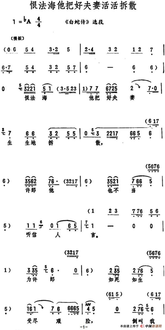 关于《恨法海他把好夫妻活活拆散》曲谱的评论
