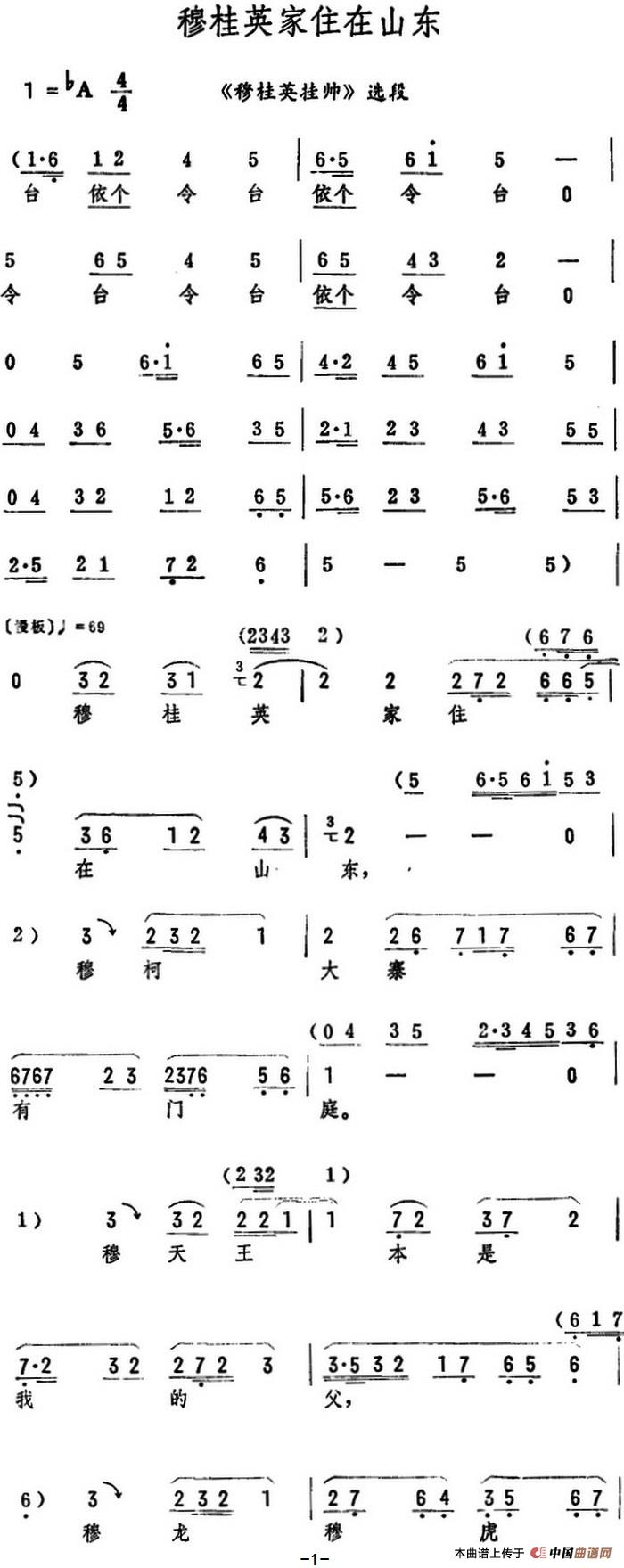 关于《穆桂英家住在山东》曲谱的评论