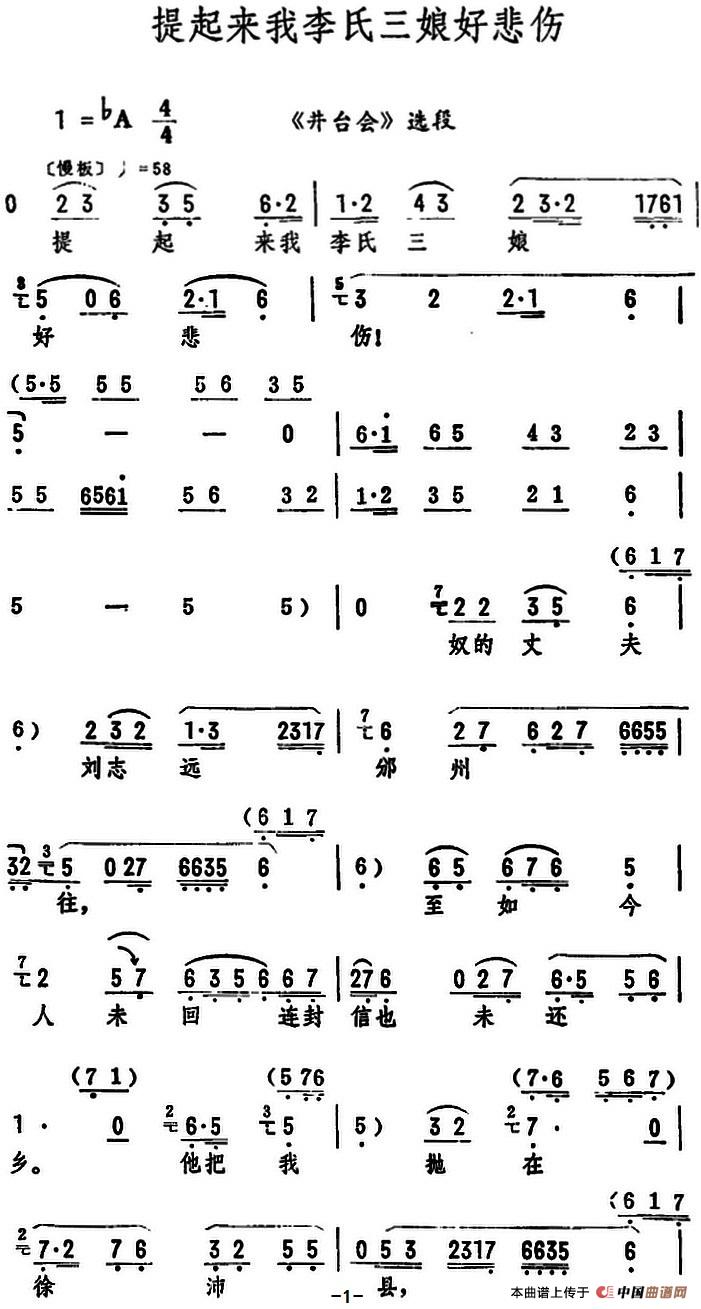 提起来我李氏三娘好悲伤(《井台会》选段)