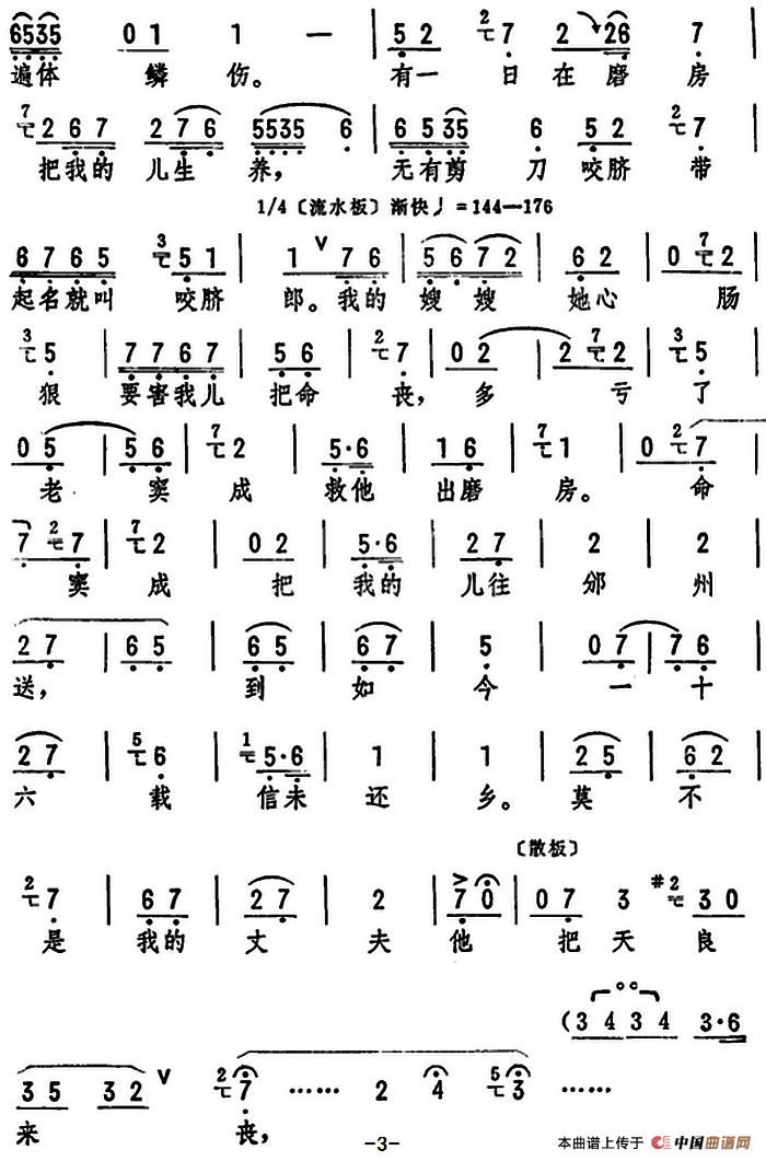 关于《提起来我李氏三娘好悲伤》曲谱的评论