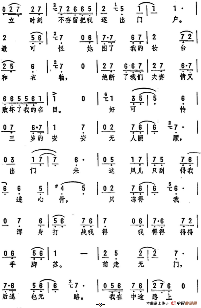 关于《庞三春出门来我的泪如雨露》曲谱的评论