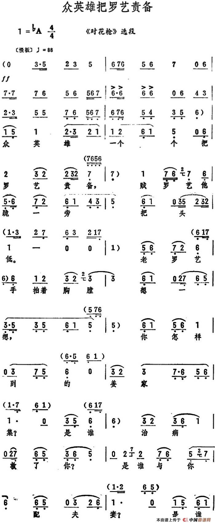 关于《众英雄把罗艺责备》曲谱的评论