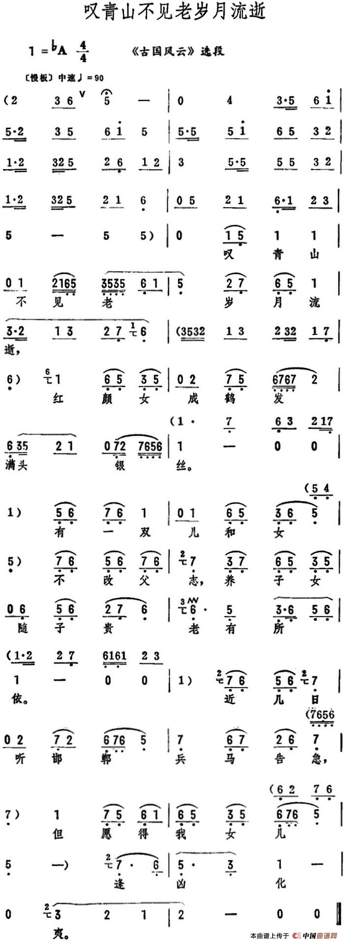 关于《叹青山不见老岁月流逝》曲谱的评论