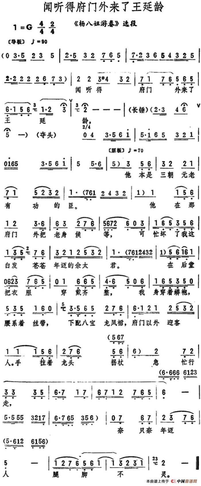 关于《闻听得府门外来了王延龄》曲谱的评论