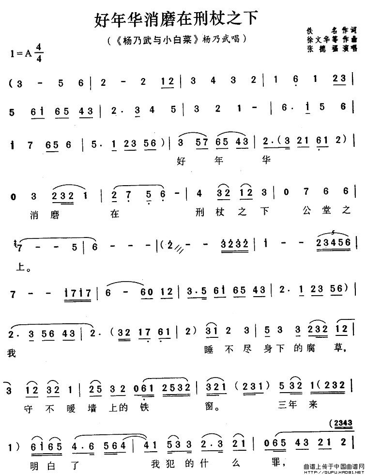 好年华消磨在刑杖之下(《杨乃武与小白菜》杨乃武唱段)