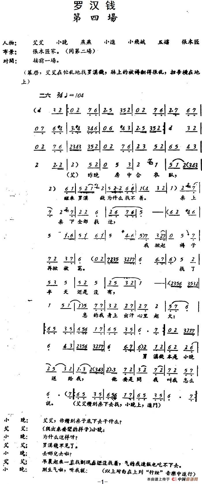 关于《罗汉钱 》曲谱的评论