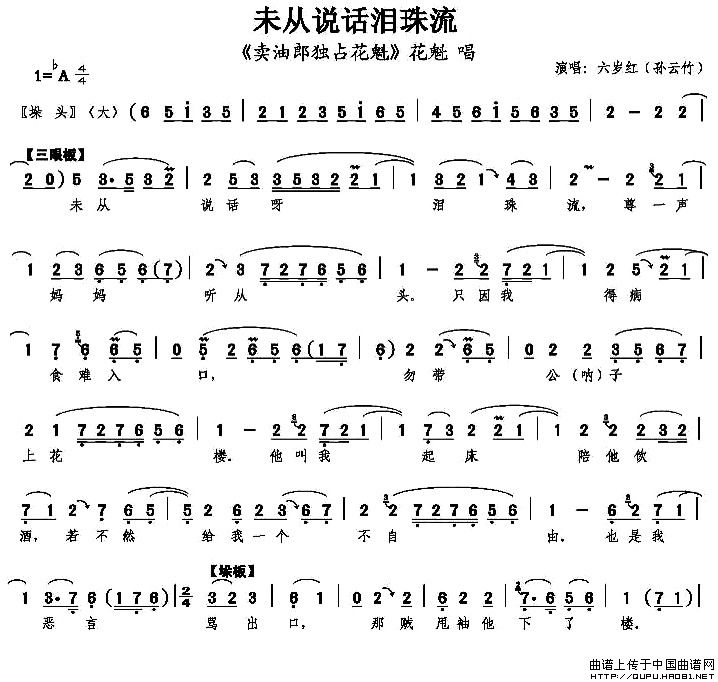 未从说话泪珠流(《卖油郎独占花魁》花魁唱段)