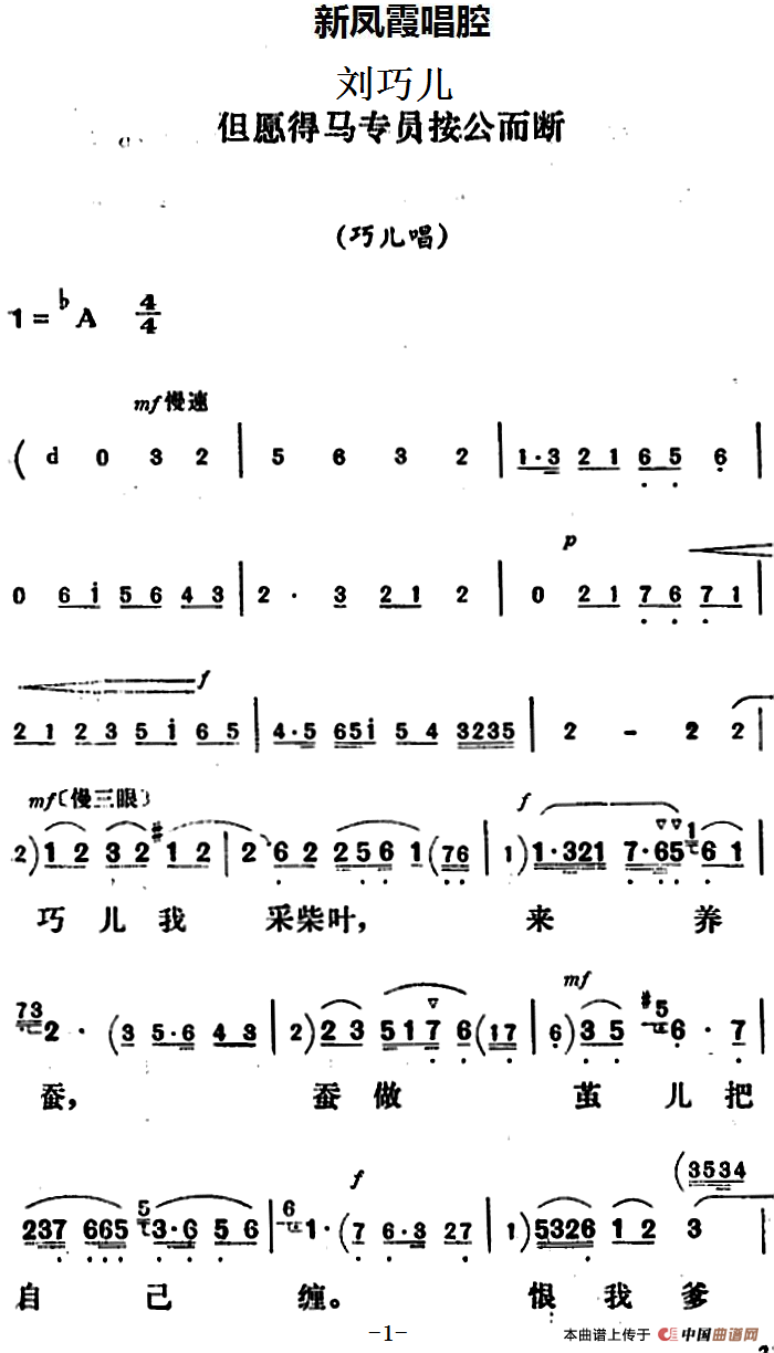 关于《新凤霞唱腔选:但愿得马专员按公而断》曲谱的评论