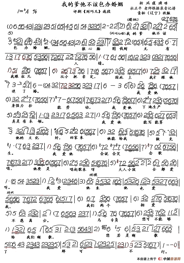 关于《我的爹他不该包办婚姻》曲谱的评论