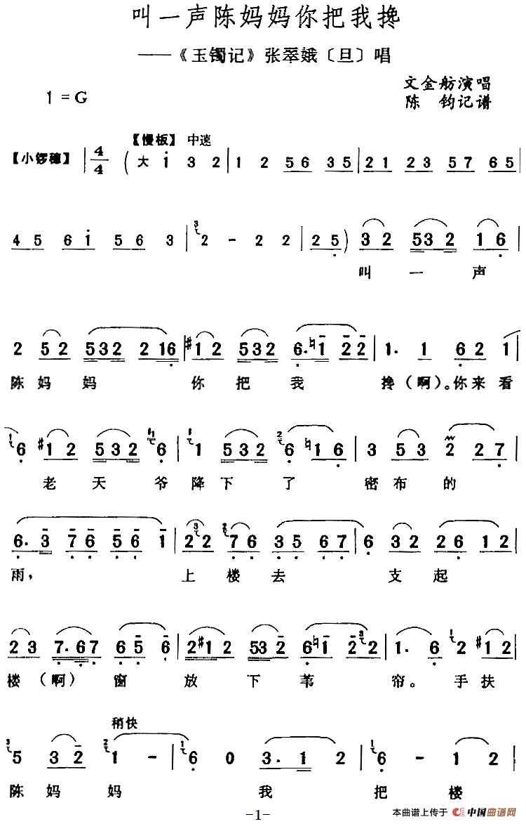关于《叫一声陈妈妈你把我搀》曲谱的评论