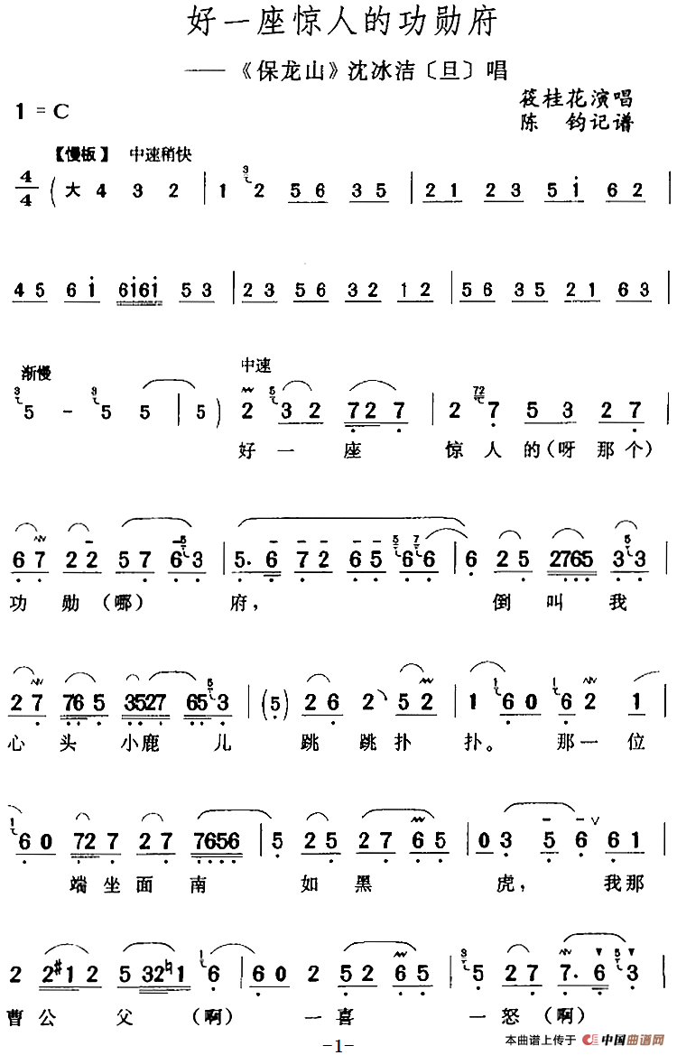关于《好一座惊人的功勋府》曲谱的评论
