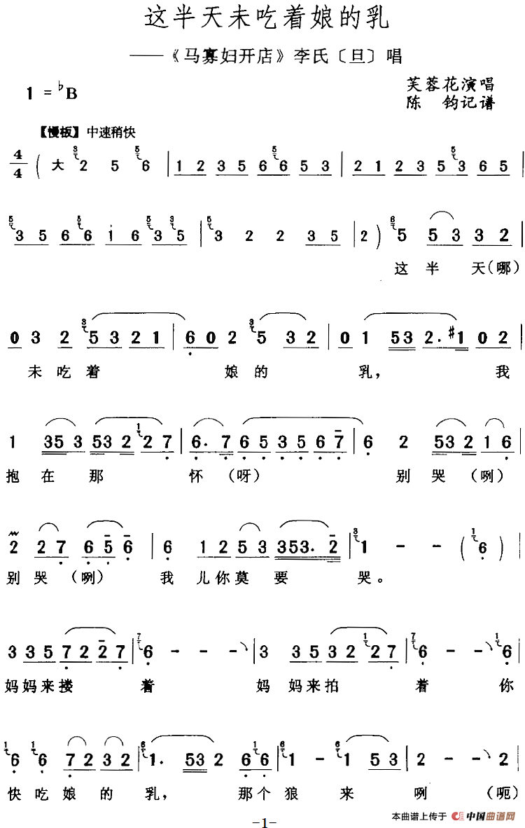 ![这半天未吃着娘的乳(《马寡妇开店》李氏[旦]唱段)(1)_原文件名:这半天未吃着娘的乳(《马寡妇开店》李氏[旦]唱段)芙蓉花演唱 陈钧记谱132.png](/Public/Uploads/2018/04/20/2379455ad9dd56b6a64.png)